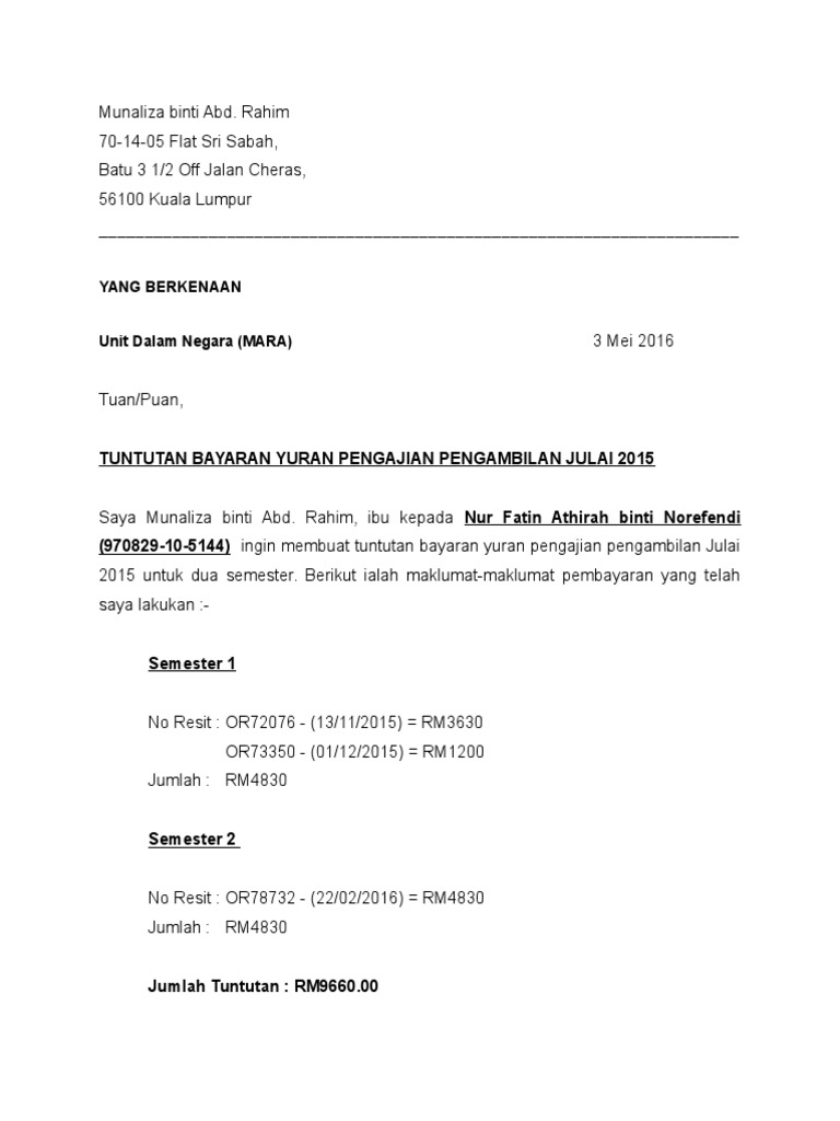 Microsoft Word Surat Tuntutan Bayaran Semester Mara Pdf