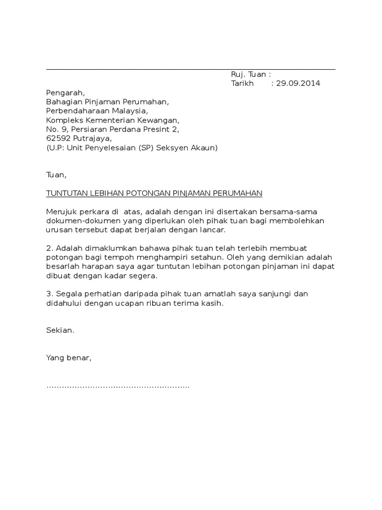 Surat Tuntutan Lebihan Bayaran Pinjaman Perumahan Pdf
